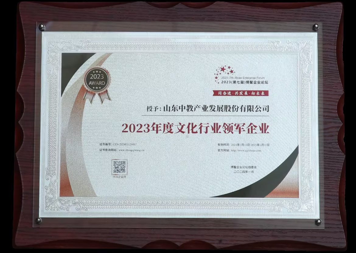 中教產(chǎn)業(yè)榮獲“2023年度文化行業(yè)領(lǐng)軍企業(yè)”稱號